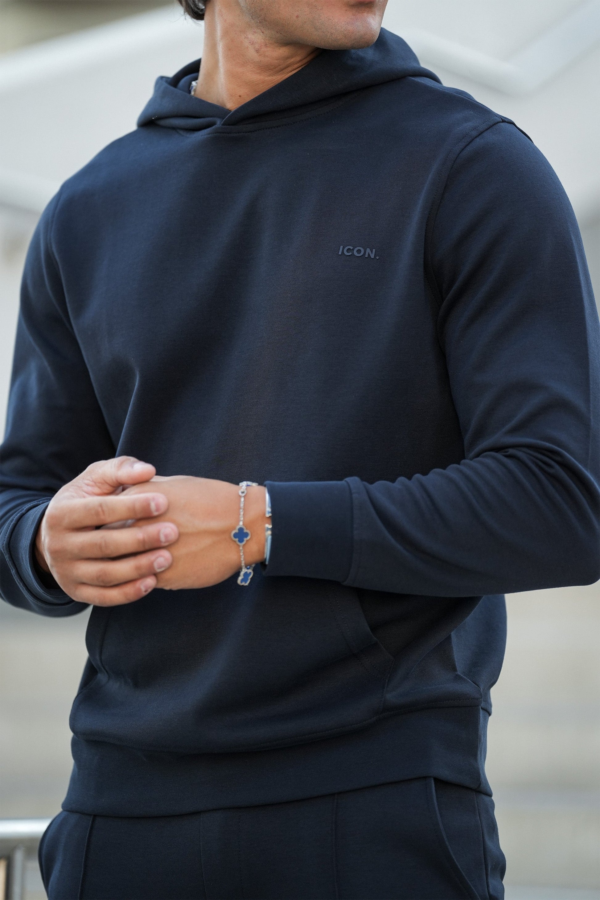 Leave the Gym with Some Swagger. Pull on the Athletic Hoodie and win the rest of your day. This bold sport casual look is well considered with a more structured, straight cut, while still offering the comfort of a double face sweatshirt knit. It's relaxed fit makes it perfect to pair over the ICON Athletic Hoodie with our ICON. Athletic Jogger.