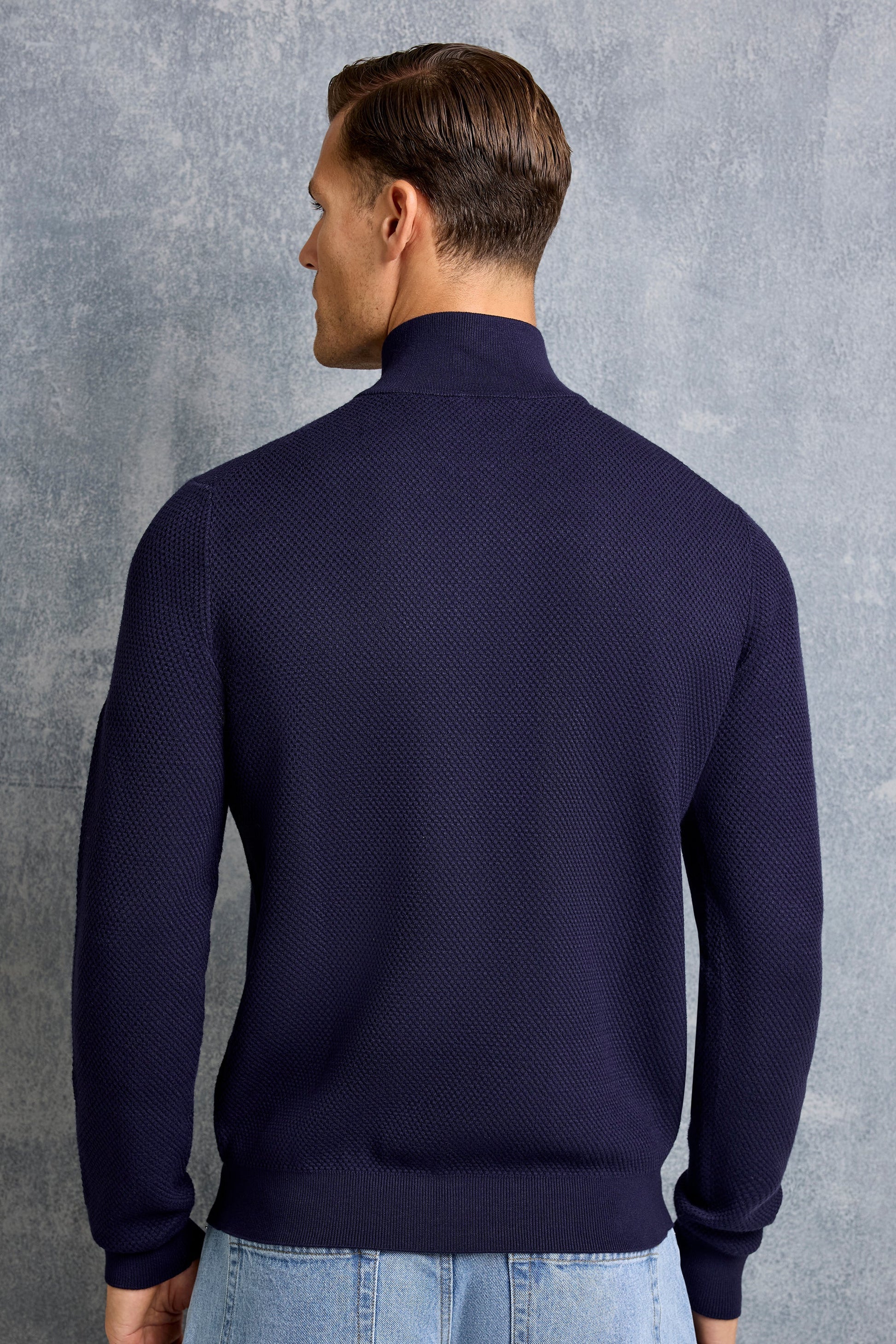 A refined update to the everyday sweater. Made from textured jacquard knit, the Fabio Halfzip Sweater features a high collar and branded zip for modern versatility.